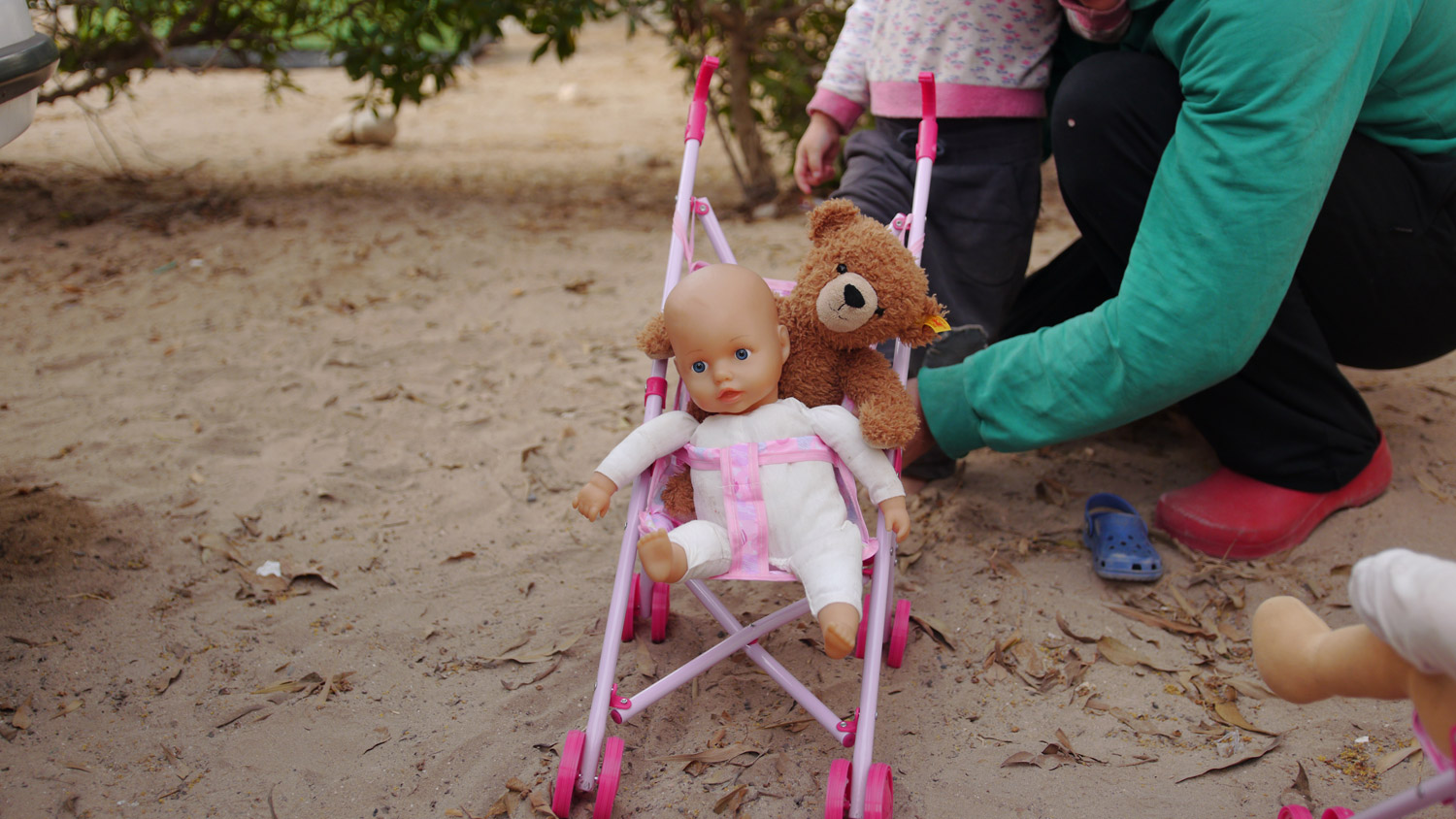 Wie Toni es vorhergesehen hat, findet uns der Osterhase, obwohl wir am Ende der Welt in Marokko sind. Er hat sogar zwei rosa Puppen-Buggies hergeschleppt, Toni hat sich so ein Plastikding schon ihr halbes Leben gewünscht.