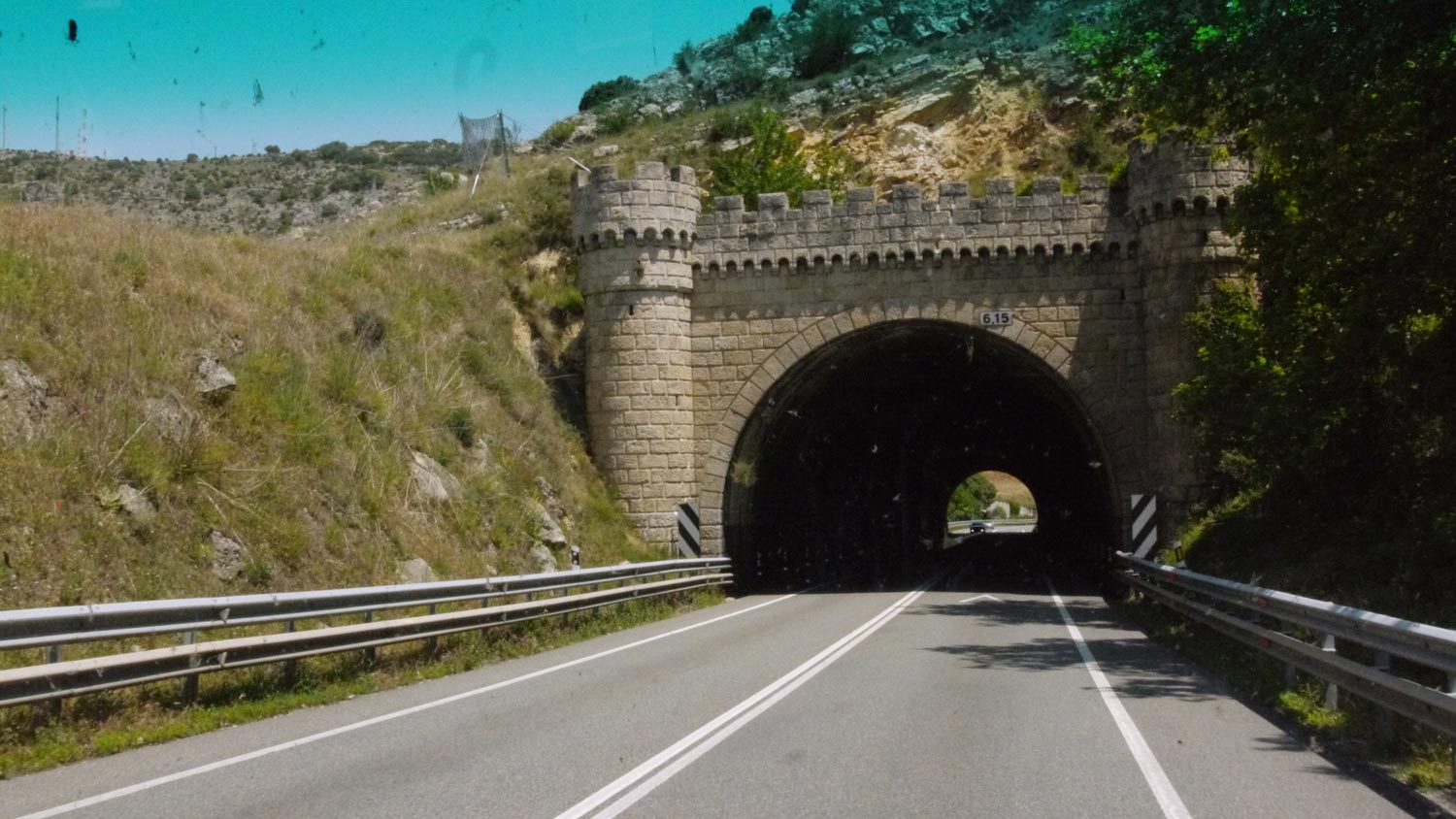 Den heißen Nachmittag wollen wir – der gestrige Tag dient als Vorlage – wieder an einem Embalse verplanschen. Es gibt in Spanien ja genügend davon. Hinter Vitoria-Gasteiz stehen zwei zur Auswahl, Volker lotst uns, in ungewohnter Rolle als Beifahrer, leider zu dem, der nicht auf unserer Strecke liegt. Ich schimpfe, hungrig und erschöpft von der langen Fahrt. Es sieht nicht mehr nach Spanien aus, sondern nach Schweiz. Waldige Hügel, alpenländische Häuschen mit saftig grün getrimmten Rasenflächen davor. Die lichten, trocken-gelben Korkeichenwälder, war das wirklich erst gestern? Kuhglocken. Und an den See ist kein Rankommen. Wald und Wiesen wuchern bis zum Ufer, ersterer ist für den Düdo nicht zu passieren, auf letzteren steht das Weidevieh.