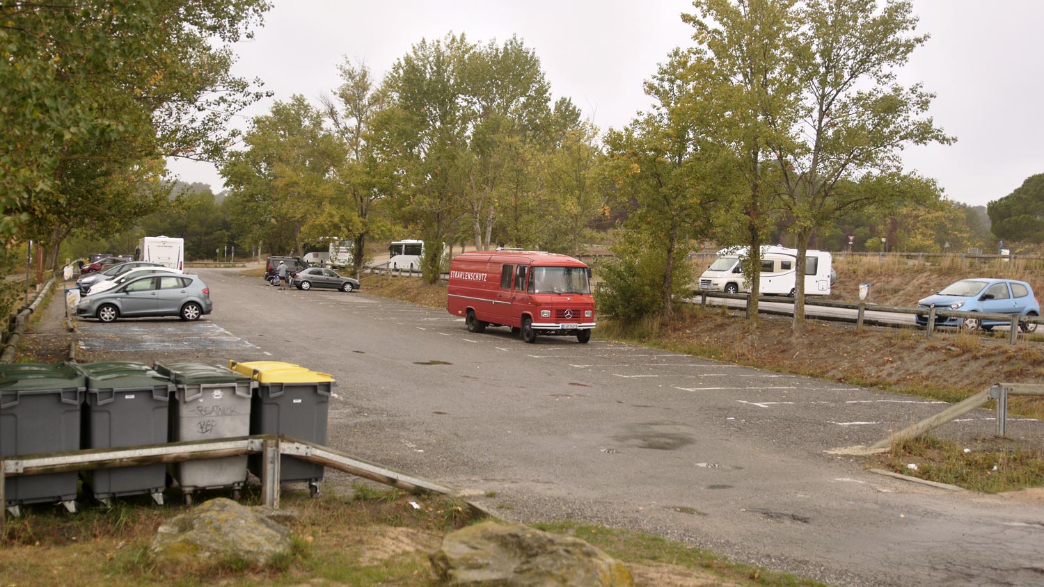 Wir haben uns den Dichtungsring zur Mercedes-Niederlassung in Carcassonne bestellt, clevere Idee, denn Bestellzeit waren drei Werktage. Hier sitzt keine hippe Französin, sondern ein beflissener Franzose am Ersatzteil-Schreibtisch, der die Bestellung erst nicht findet, dann doch, dann ist der Ring aber augenscheinlich viel zu riesig, er sagt, das ist aber das Teil, das bestellt wurde. Er kommt im Laufschritt mit zum Düdo, ich haste hinterher, er sieht sich die Lage an und versteht. Sucht in seiner Computerdatei die passende Skizze vom Düdo-Motor, zoomt auf die Stelle mit der Luftablass-Schraube heran, zeigt auf den Ring, ich stimme begeistert ein, ja, genau, der ist es, er verschwindet und kommt mit dem – augenscheinlich – richtigen Ding zurück. Kostet einen Euro. Die Frau am Empfangsschalter will meine Adresse und Telefonnummer, um eine ordentliche Rechnung dafür auszustellen.