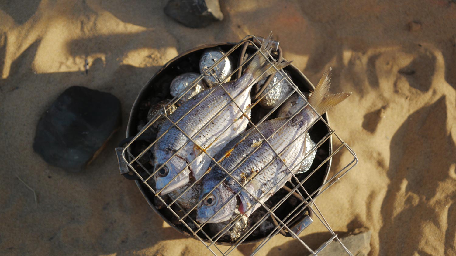 Am Ende des Tages, die Kinder toben im Dunkeln um die letzte Glut in der Feuerschale, auf der wir den Fisch gegrillt haben, verliert Sati ihren ersten Wackelzahn. Wir sind alle aus dem Häuschen, bestaunen Zahn und Zahnlücke. Was für ein feierlicher Abschluss der gemeinsamen Zeit.