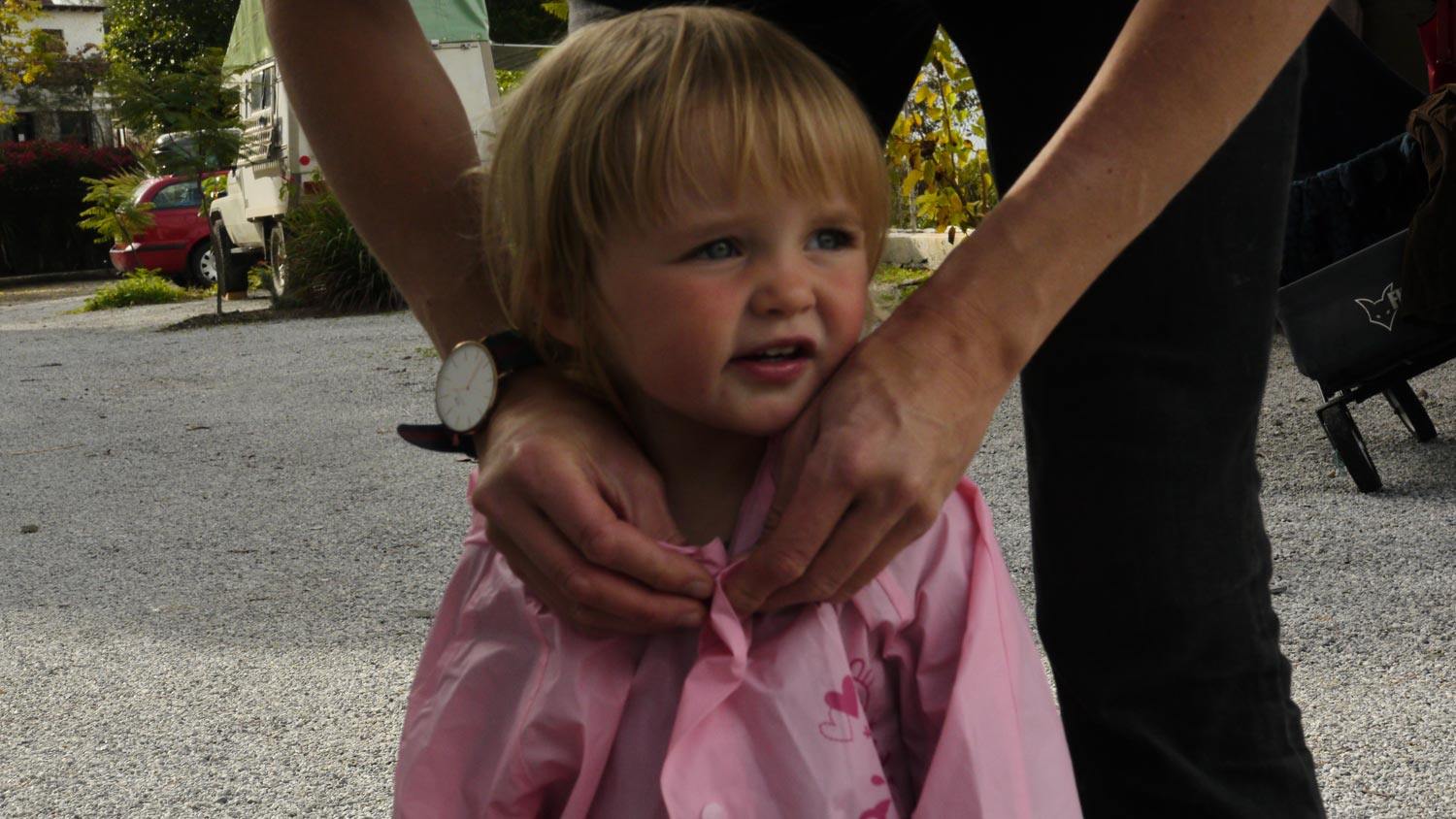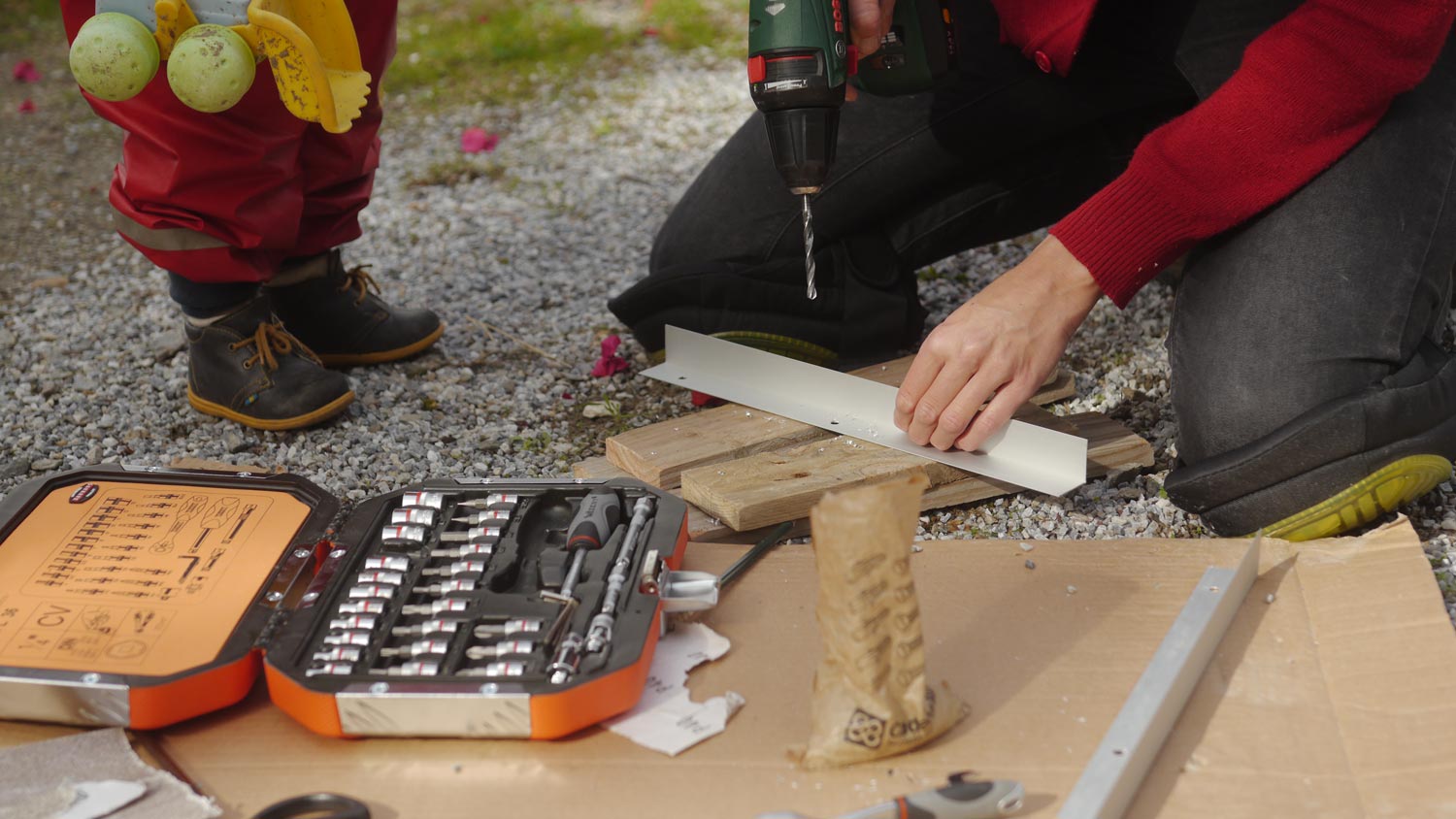 Das erste Mal seit der Nacht in den katalonischen Wäldern: Dauerregen. Der Regen trommelt aufs Düdodach, gnadenlos. Toni trommelt an die Düdotür, euphorisch: Sie braucht das Segelboot, das wir vorgestern gebastelt haben, außerdem die Tiere in der Kiste, weil da Trillchen drin sei. Toni trommelt nochmal an die Düdotür: Sie braucht Trillchen, das sei nicht in der Kiste. Trillchen steht zum Glück wie bestellt auf dem Tisch. Trillchen ist der rosa Glasbär von Kathi, er heißt erst Trillchen, seit es das Segelboot gibt. Wie der Papa Löwe für seine Tochter Trillchen ein Boot baut, haben wir das Boot am Strand gebaut, mit Säge, Akkuschrauber, Schere, Tacker, während Volker und Peppi Mittagsschlaf hielten. Waren beide ganz beseelt davon, wie aus einem alten Ruderblatt, von dem der grüne Lack abblättert, aus dem Stoff eines alten Sonnenschirms, der kaputt am Strand liegt, einem Stock Treibholz und ein paar Schrauben, unter unseren Händen ein herrliches Floß entstand, wie gemacht für Trillchen. Jetzt also: Segelboot in die Pfütze, Toni, euphorisch: Die Kinder sprechen auch deutsch! Wir sind zufällig auf dem Campingplatz gelandet, den die Leute machen, bei denen wir uns via Workaway beworben hatten, ohne jemals Antwort zu erhalten, wie meistens. Und jetzt landen wir, von allen Campingplätzen Südspaniens, ausgerechnet auf diesem. Heute morgen bin ich kurz vor dem Koller: Das Hinterzimmer ist schon wieder so zugestellt, dass man an nichts drankommt, also buchstäblich: An nichts. Dabei war ich so stolz auf die zwei neuen Holzkisten, eine Kombination aus Baumarktholzplatten und Palettenholz, von dem wir immer noch zehren. Ich habe beide auf dem Berg gebaut, unter Höhensonne.