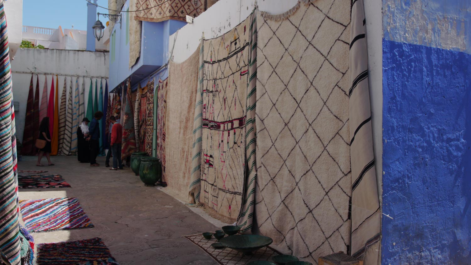 Wir kaufen die Tücher, die uns schon an unserem ersten Tag in Marokko so gut gefallen haben. Genau solche hatten wir danach nirgends sonst mehr gesehen. Und eben die Stoffe für die Vorhänge. Des „Anciennes“, riesige handgewebte Decken aus den 60er oder 70er Jahren. Würde am liebsten noch viel mehr kaufen. Es sind so fantastische Farben und Muster.