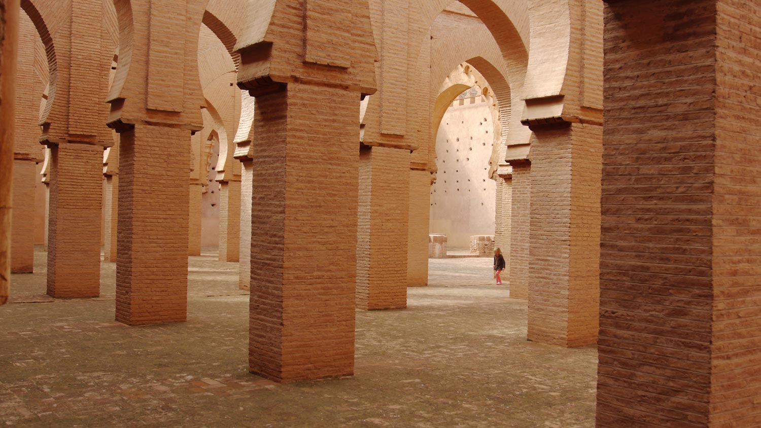 Ich will die „lichtdurchflutete Feierlichkeit“ sehen, von der unser WDR-Redakteur spricht, also der Autor von unserem Reiseführer. Zwei marokkanische Jungs lassen uns rein, Eintritt 10 Dirham für uns alle, und dann stehen wir drin, in der Moschee von Tin Mal. Sie ist noch lichtdurchfluteter und feierlicher als ich sie mir vorgestellt hatte, und vor allem sind wir ganz allein. Die Kinder sind auch begeistert und rennen zwischen den Pfeilern herum. Was Architektur kann.