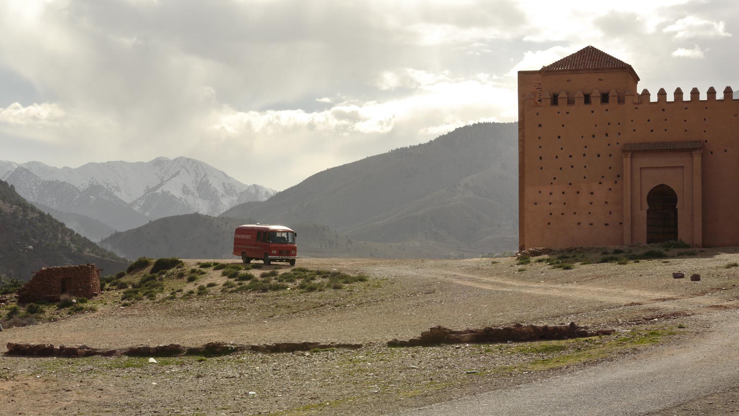 Allerdings merke ich im Düdo, dass wir gar nicht genug Geld dabei haben, sondern etwa 150 Dirham zu wenig. Geldautomaten gibt es hier im Gebirge natürlich nicht. Ich schleppe die gesamte verbliebene Tauschware zu Abdou, schildere ihm das Problem, biete an, dann eben einen Teppich weniger zu nehmen, aber er will, dass ich alle vier nehme, willigt ein, sagt, dass er jetzt kein Geschäft macht, sondern das der Einkaufspreis sei – ich hoffe das, kann mir aber kaum vorstellen, dass er für sich selbst nur eine etwa zehnprozentige Gewinnspanne vorsieht – however, wir bringen die Transaktion über die Bühne.