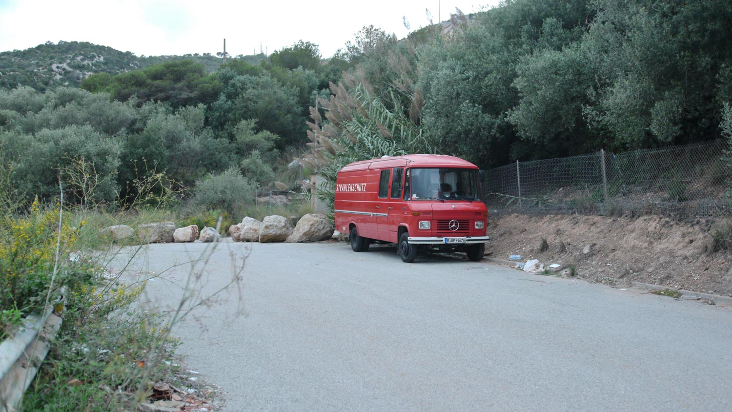 Am nächsten Morgen sehen wir, wie perfekt unser Stellplatz war. Die Straße führt zu einem einzigen Haus, und wir standen gut geschützt unter Bambuswedeln in einer unbefahrenen Ecke. Im Morgengrauen geht es weiter, eine kurvige Küstenstraße entlang, dramatischer Himmel, kaum Sonne, eine riesige Fabrik. Trotzdem finden wir Spanien zum ersten Mal schön. Wir halten in Sitges, an der Strandpromenade. Rollerbladerinnen. Es gibt feinen Sand und einen Wasserhahn. Vor dem Frühstücken müssen wir die Blechnäpfe spülen. Drei muskulöse junge Herren tragen ihre Surfbretter, kurze Dinger, unter dem Arm zum Strand und reiten alsdann auf den Wellen. Volker drückt seine Skepsis über meinen Plan aus, in diesem Leben noch Wellenreiten zu lernen. Es fängt an zu regnen. Spanien meint es immer noch nicht gut mit uns.