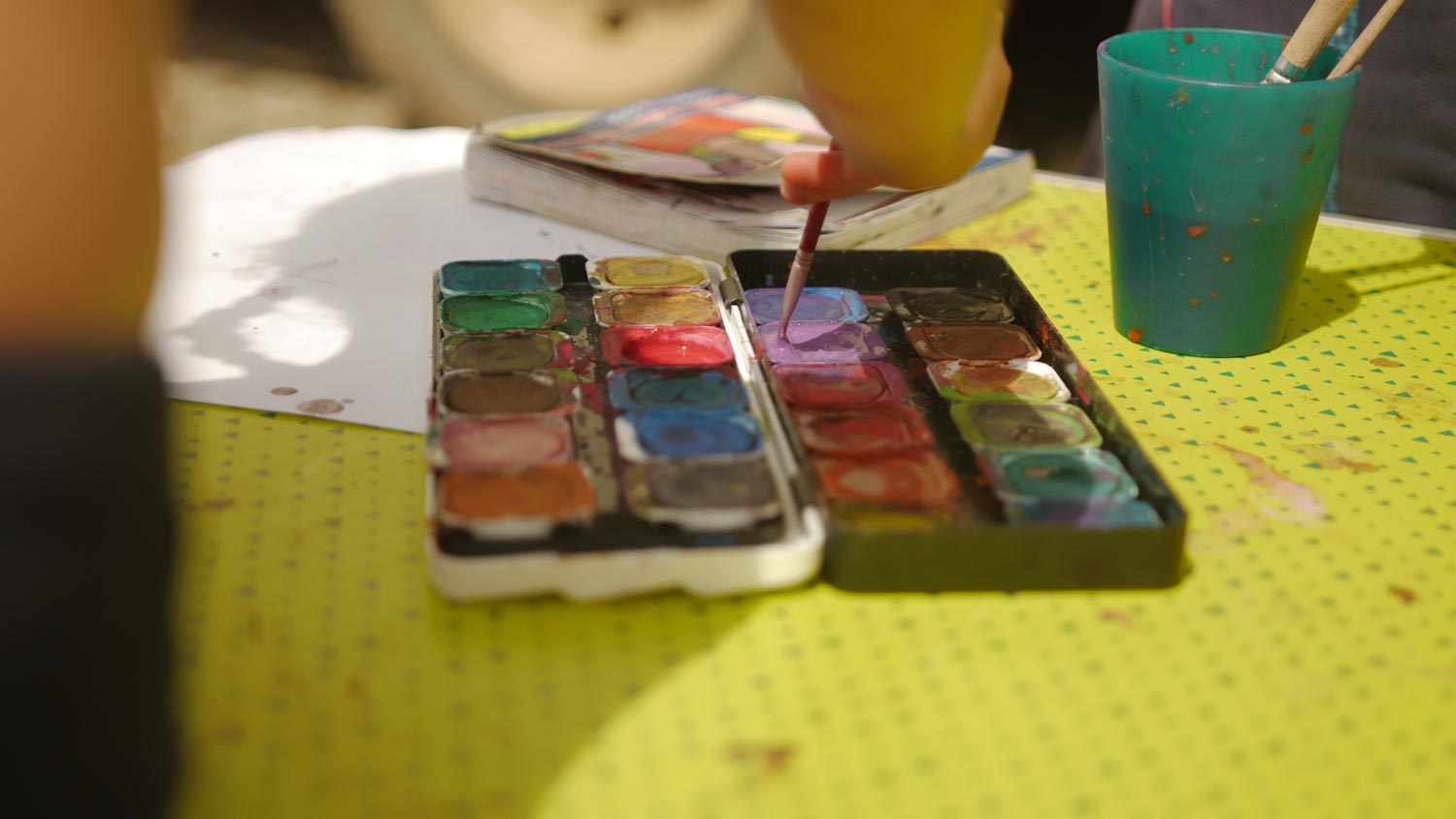 Am Abend bilden sich zwischen den Bussen kleine Lounges, die Leute hängen Lichterketten auf und räkeln sich auf Luftmatratzen und Decken. Einer spielt Gitarre, während er in einem Kreis mit anderen einen Ball hin und her kickt. Über dem Parkplatz liegt eine Leichtigkeit, von der ich nicht weiß, ob sie auch für uns gilt.