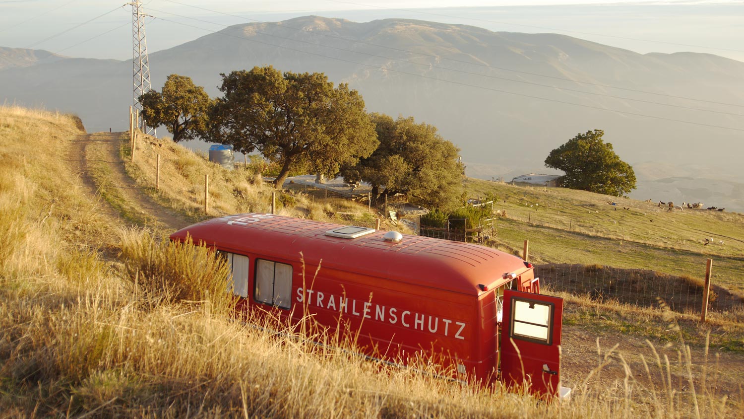 Es ist schon spät am Nachmittag, wir verzichten auf den Nussknacker und die Metallbecher, die wir hier noch kaufen wollten, und schreiten voran, Richtung Motril, Richtung Nerja, Richtung Málaga. Hinter Nerja geht die Sonne unter, wir brauchen einen Schlafplatz. Links Parkbuchten zwischen Strand und Landstraße, überall das Schild mit dem durchgestrichenen Caravan. Plötzlich sehen wir links Wohnmobile stehen, ein Düdo ist dabei! Als Volker unseren Düdo parkt, neben einem riesigen Ding mit ausfahrbarem Seitenzimmer, gibt es ein ungesundes, metallisches Geräusch.