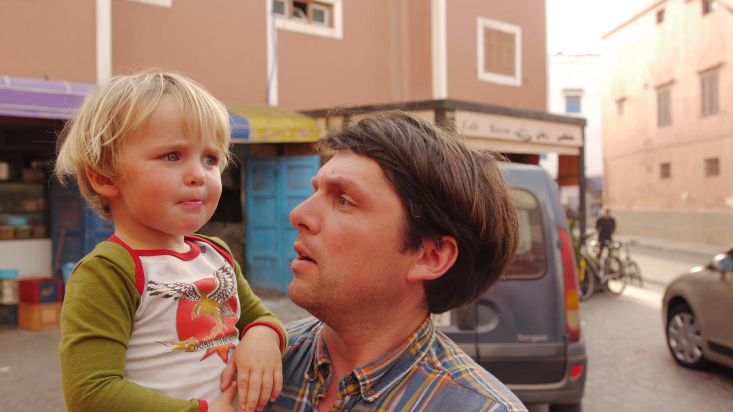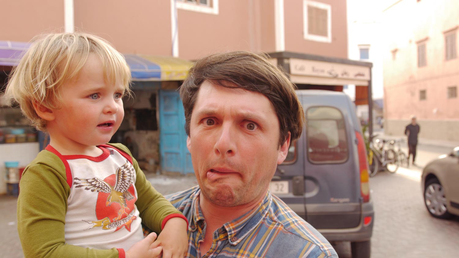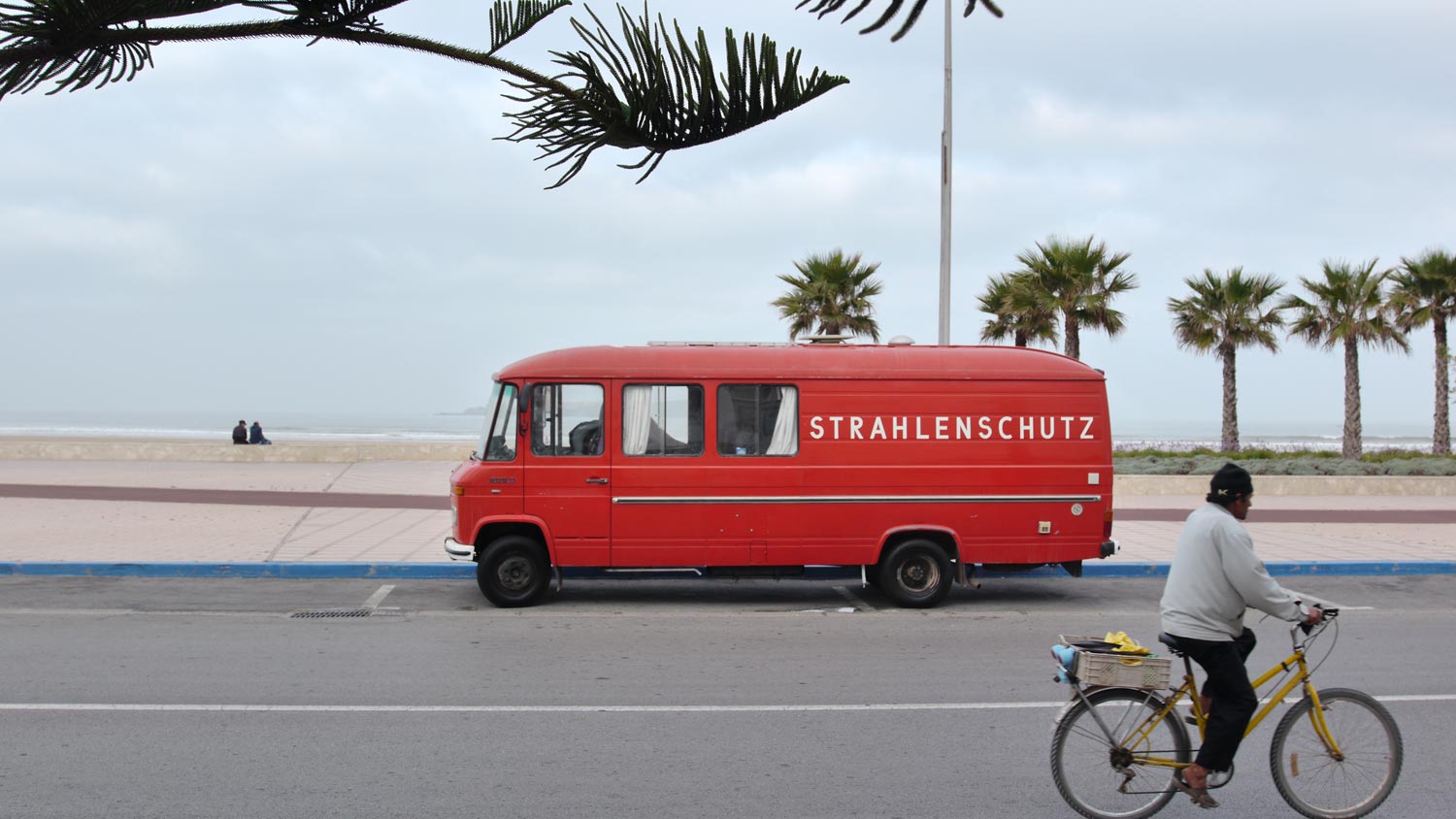 Kleine Jungs machen sich ein Spiel daraus, mit ihren Rollern so nah wie möglich am Düdo vorbeizuscheppern. Peppi wird alle paar Minuten abgeküsst, ich bin leider nie schnell genug, das mal zu fotografieren. Die kleinen Jungs hingegen verziehen sich, als ich ein Foto von ihnen mache. Später kommen sie wieder, als Teil einer größeren neugierigen Kindertraube. Volker macht das so gut, freundlich zu diesen kleinen Rotzlöffeln zu sein und ihnen trotzdem weder Stylo noch Bonbon noch Dirham zu schenken.