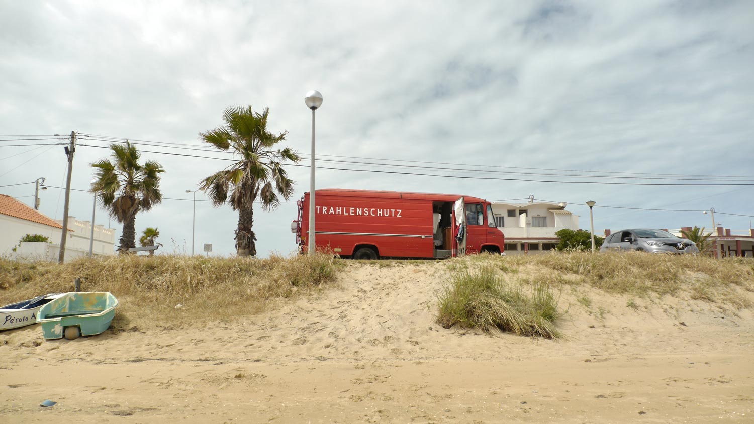 Wir rollen von der Insel, müssen Klo ausleeren. Finden wieder intuitiv („Rechts oder links?“ „Links.“) eine fast menschenleere Piste am Rand des Naturschutzgebietes, auf der einen Seite liegt ein Palmenwäldchen in einer Senke, auf der anderen Seite erheben sich tolle Kletterhügel aus roter Erde. Dazwischen Weidelandschaft, Blumenpflückgebiet, Vögel mit einem blauen Rücken hüpfen vor dem Düdo. „Die Blumen heißen Lillis“, sagt Toni, ich korrigiere sie: „Lilien!“, sie guckt traurig, ich bereue es sofort. Es sind tatsächlich kleine, nach parfümierter Seife duftenden, hellviolette Lilien. Ein würdiger Platz, um Henning zu erwarten.