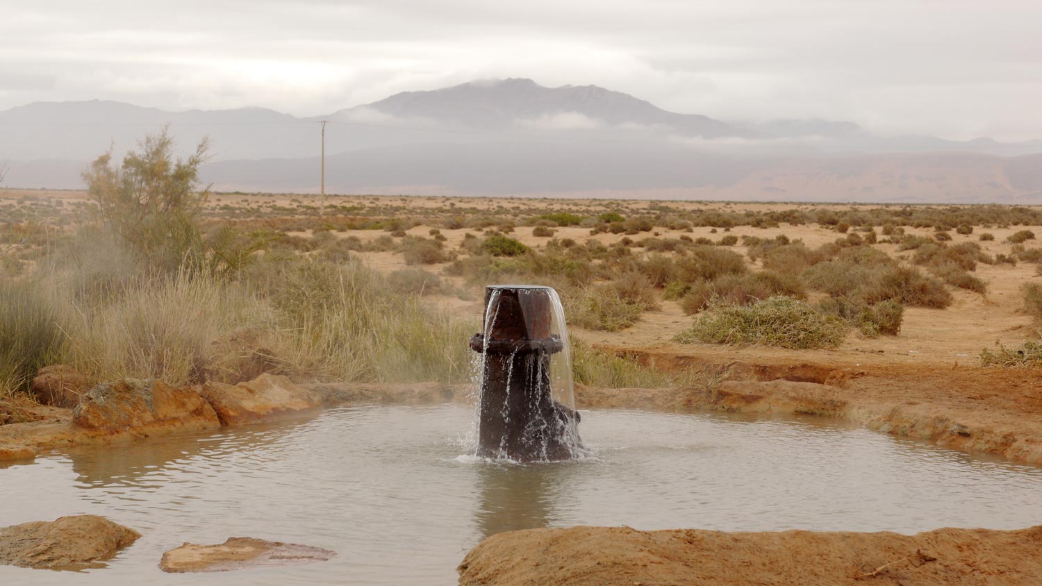 Auf dem Marjane-Klo gucke ich in den Spiegel, zum ersten Mal seit ein paar Tagen. Ich habe gespürt, dass meine Haare sich klebrig und voluminös anfühlen, seit sie in der heißen Quelle waren, dachte aber, dass das ganz gut aussähe. Tut es nicht. Ich sehe aus wie Tingel-Tangel-Bob.