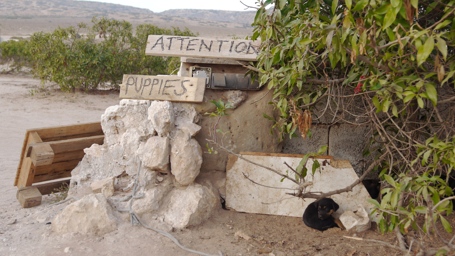 Wir müssen auf den Campingplatz umziehen, haben seit vier Tagen nicht geduscht. Ich folge dem Parkwächter zum Bezahlen, er erlässt uns eine Nacht für einen Stapel Babykleidung, stapft dann greinend zum fliegenumschwärmten Bretterverschlag der Welpen, zieht einen hervor, der hat sich schon platt gelegen. Der Parkwächter hält das Hündchen anklagend hoch: „Das war das Große. Das wollte ich für mich.“ Er steigt die Schlucht zum Strand ein paar Schritte hinab, schleudert den toten Welpen ins Gebüsch. Er fischt einen weiteren aus dem Verschlag, genauso tot, wirft ihn seinem Bruder nach. Das Bild der toten Hündchen, die in hohem Bogen durch die Luft fliegen, flirrt noch lange vor meinem inneren Auge.