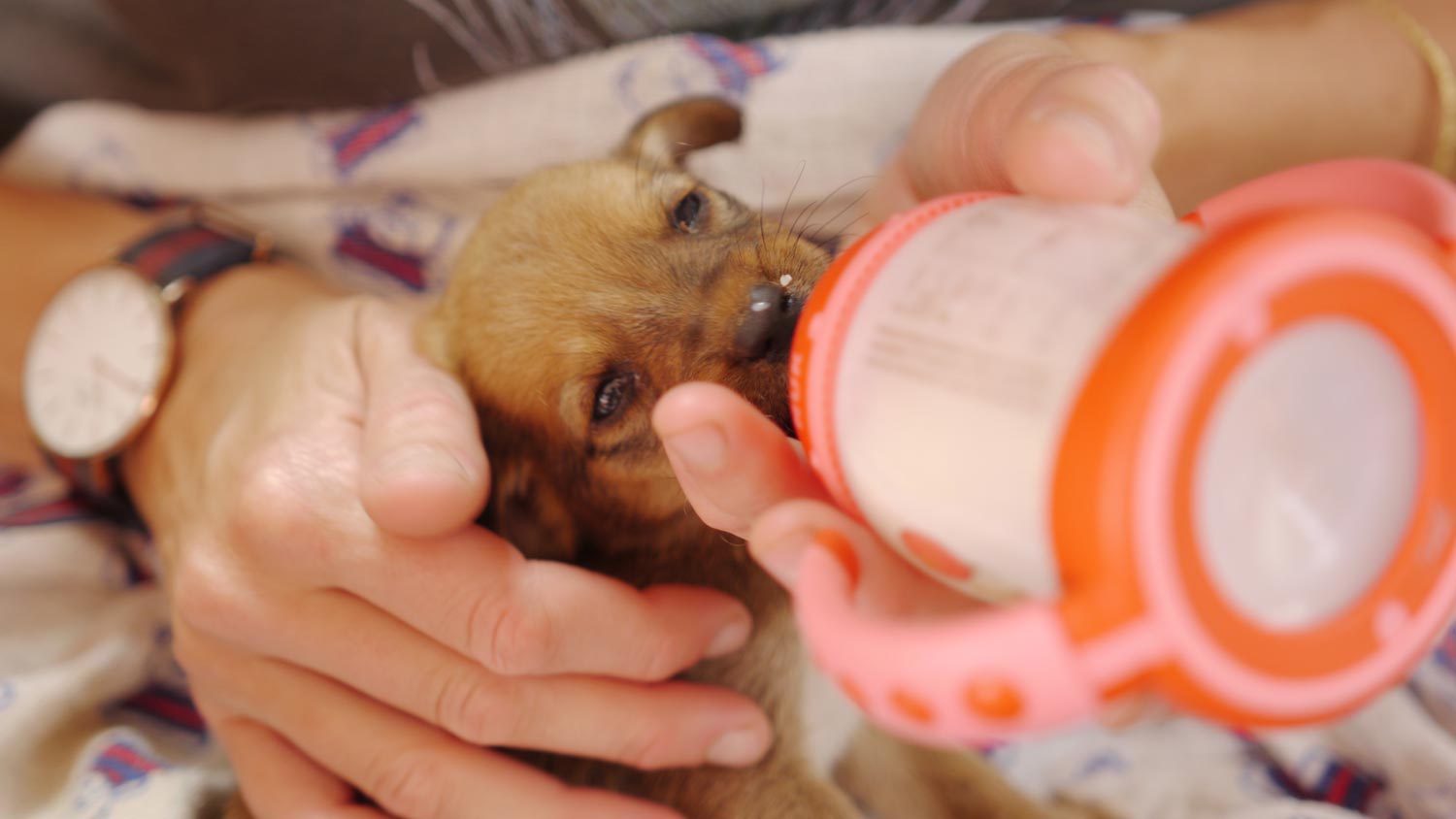 Als ich dem Hündchen zu viel Milch auf einmal gebe, kotzt es alles wieder aus. Man muss tröpfchenweise vorgehen. Als ich ihm ein Fläschchen voll eingeflößt habe, lege ich es wieder zu seinen Geschwistern. Hoffe, dass ich sein Leiden mit meiner Intervention nicht verlängert habe. Meine Hoffnung war, dass es die Kurve kriegt, wenn ich es in dieser kritischen Phase unterstütze. Danach sieht es leider nicht aus. Es hat nicht angefangen, wieder von selbst zu trinken, sondern musste zu jedem Schluck mehr oder minder gezwungen werden. Kurioserweise hat es trotzdem genug Kraft, sich immer wieder aufzurappeln und ein paar Schritte zu taumeln. Den ganzen Tag über trage ich es immer wieder zu seinen Geschwistern oder zu seiner Mutter, wenn die gerade da ist. Ich will nicht, dass es alleine stirbt.