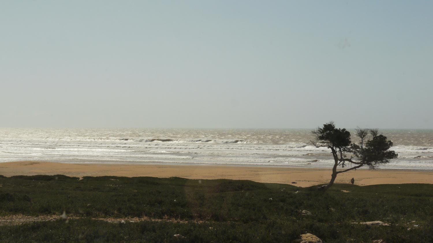 Die Entscheidung für Ounagha steht. Ganz abgesehen davon dass es uns hier viel zu windig ist, gibt es weit und breit keinen Schreiner. Nur Hostels und Surfschulen. Es gibt ja nicht mal Läden, sondern nur ein kleines Lädchen mit Späti-Preisen für marokkanische Verhältnisse. Volker lässt sich an der Rezeption die Skizzen ausdrucken (es dauert lange, aber es klappt erstaunlicherweise und kostet nicht einmal), dann düsen wir zurück nach Ounagha.