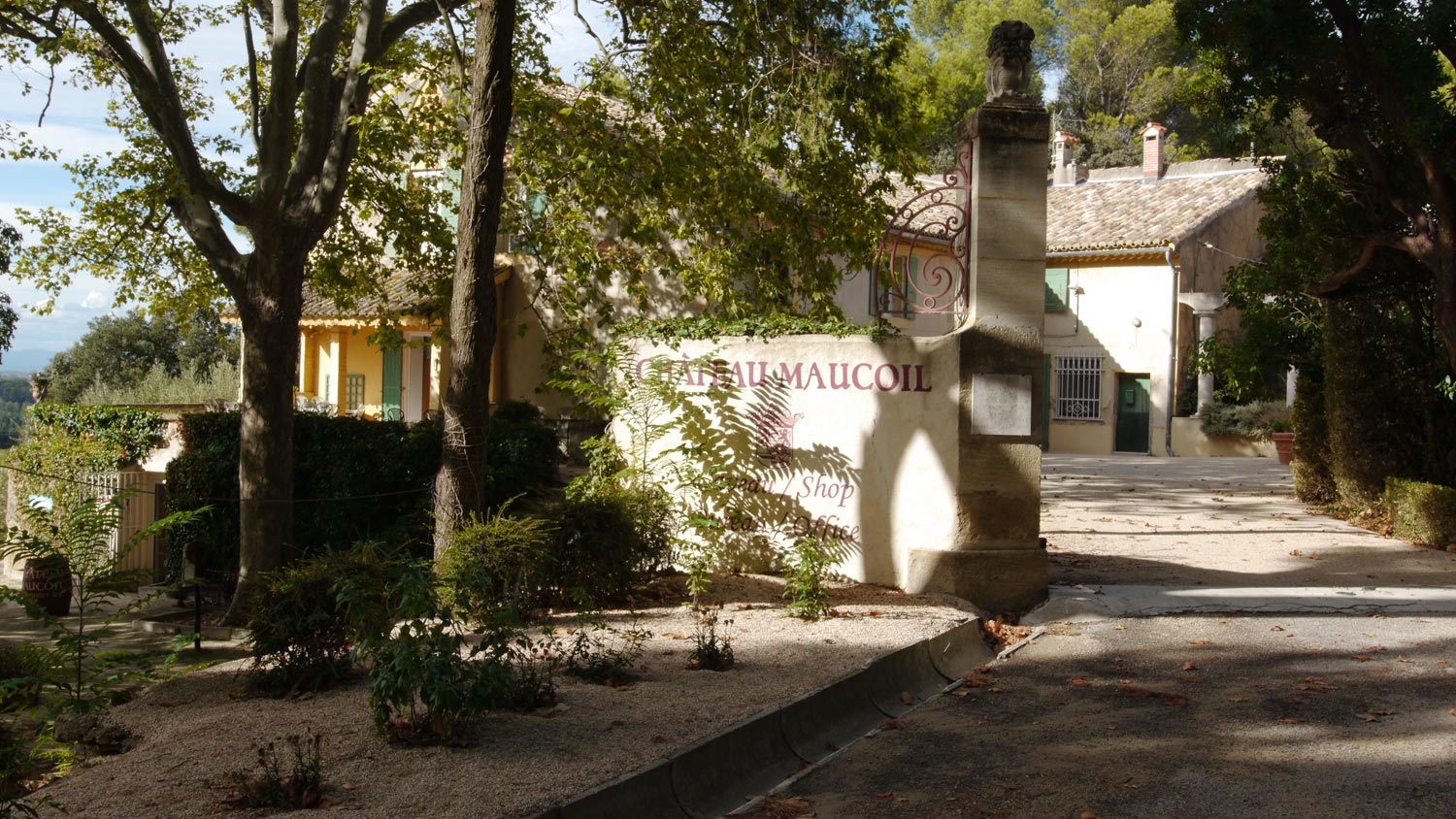 Das Weingut ist riesig. Alles sieht teuer und edel gealtert aus. Der Stellplatz ein Plateau aus hellem Schotter umgeben von Kastanien und anderen Bäumen. Blick aufs Rhônetal. Ich bin stolz auf den Düdo, der sich ins Ensemble so gut einfügt, die Atmosphäre nicht fremdkörperhaft verschandelt wie es ein normales Wohnmobil täte. Der Winzer in seinem Büro wieder sehr freundlich. Ja, Klo dürfen wir wirklich benutzen, Schildern folgen. Es sind Klokabinen mit Dusche, in denen Schaben sitzen. Das angekündigte Piscine mit Quellwasser ist leider abgeschlossen. Aber das Wasser ist trüb, man sieht Frösche schwimmen. Wäre wohl eh nichts.