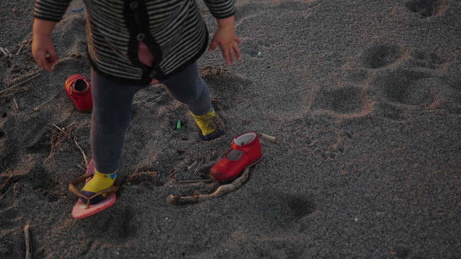 Allerhand vom Unwetter Angeschwemmtes, Treibholz, Orangen, Anglermüll. Wir finden handtellergroße Muscheln, und Peppi findet eine Plastikflasche nach der anderen. Wir stellen sie heimlich wieder ab. Es fühlt sich nicht gut an, Müll auf den Strand zu stellen, auch wenn unser Kind den Müll eben hier vor 30 Sekunden aufgehoben hat. In Cabo de Gata habe ich noch einen Müllbeutel aus dem Düdo geholt und wir haben eingesammelt, aber hier bräuchten wir einen ganzen Container.