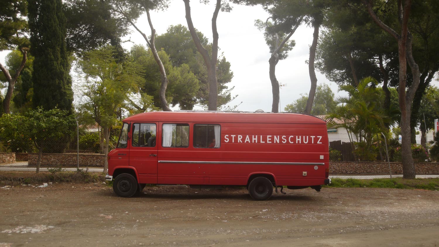 Wir kommen immerhin bis good old Torrox. Der Platz, an dem wir das zweite Mal gestanden haben, ist frei. Wir wollen aber nicht über Nacht bleiben, nur die Kinder nochmal an den Strand lassen und zu Abend essen. Dann der Plan Nachtfahrt bis Málaga . Hinter dem Düdo ist eine riesige Pfütze. Hier hat es die letzten zwei Wochen natürlich auch dauernd geregnet, wir sind ja keine 50 Kilometer von Almuñécar entfernt. Peppi macht sich alles nass, ich schimpfe Volker deshalb aus.