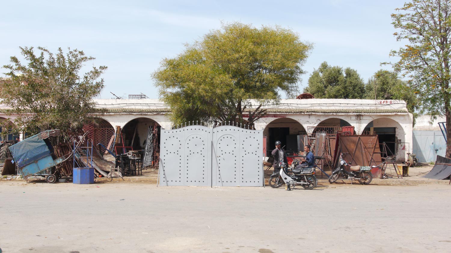 Abdullah kommt angeradelt, lotst uns dann in die enge Gasse, in der seine Werkstatt liegt. Seine Werkstatt ist ein faszinierendes Kabuff voller Metall. Er schaut sich die Lage an, behält das Kochfeld und sagt, dass er uns morgen anruft, sobald er bereit für den Einbau ist. Natürlich hat er nicht den passenden Anschluss für unsere deutsche Kochmulde, sondern wird das Teil irgendwie maßschweißen.