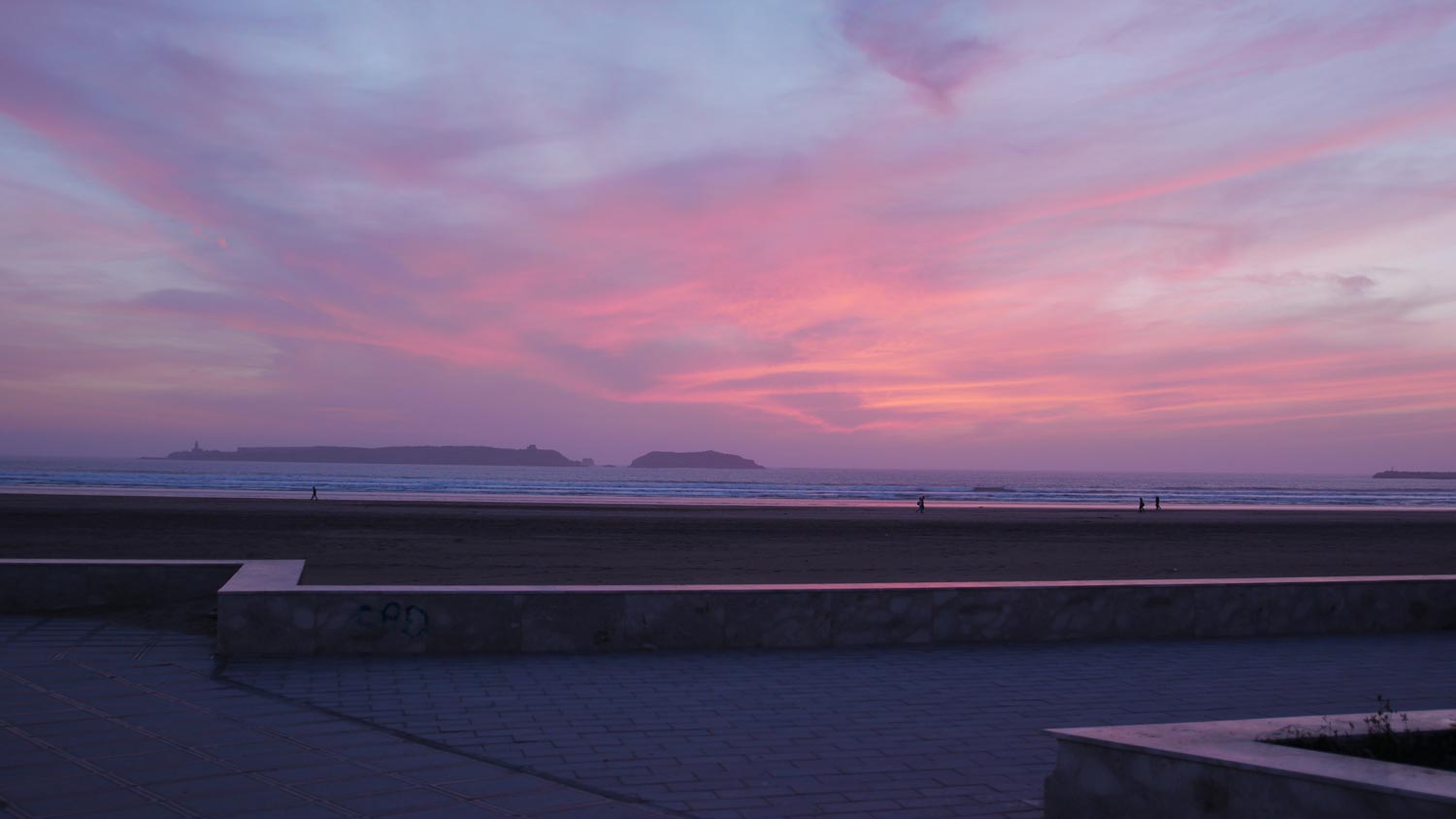 Ich bin sehr fröhlich, als wir auf Essaouira zurollen. Es beglückt mich, auf unserer Reise an Orte zurückzukehren, die wir schon kennen. Es fühlt sich heimisch an, und selbstbewusst. Der riesige Strand liegt ausgebreitet zu unserer Rechten. Im Hintergrund der viereckige Turm am Hafen. Was für eine wundervolle Stadt. Und wie ich mich darin auskenne!