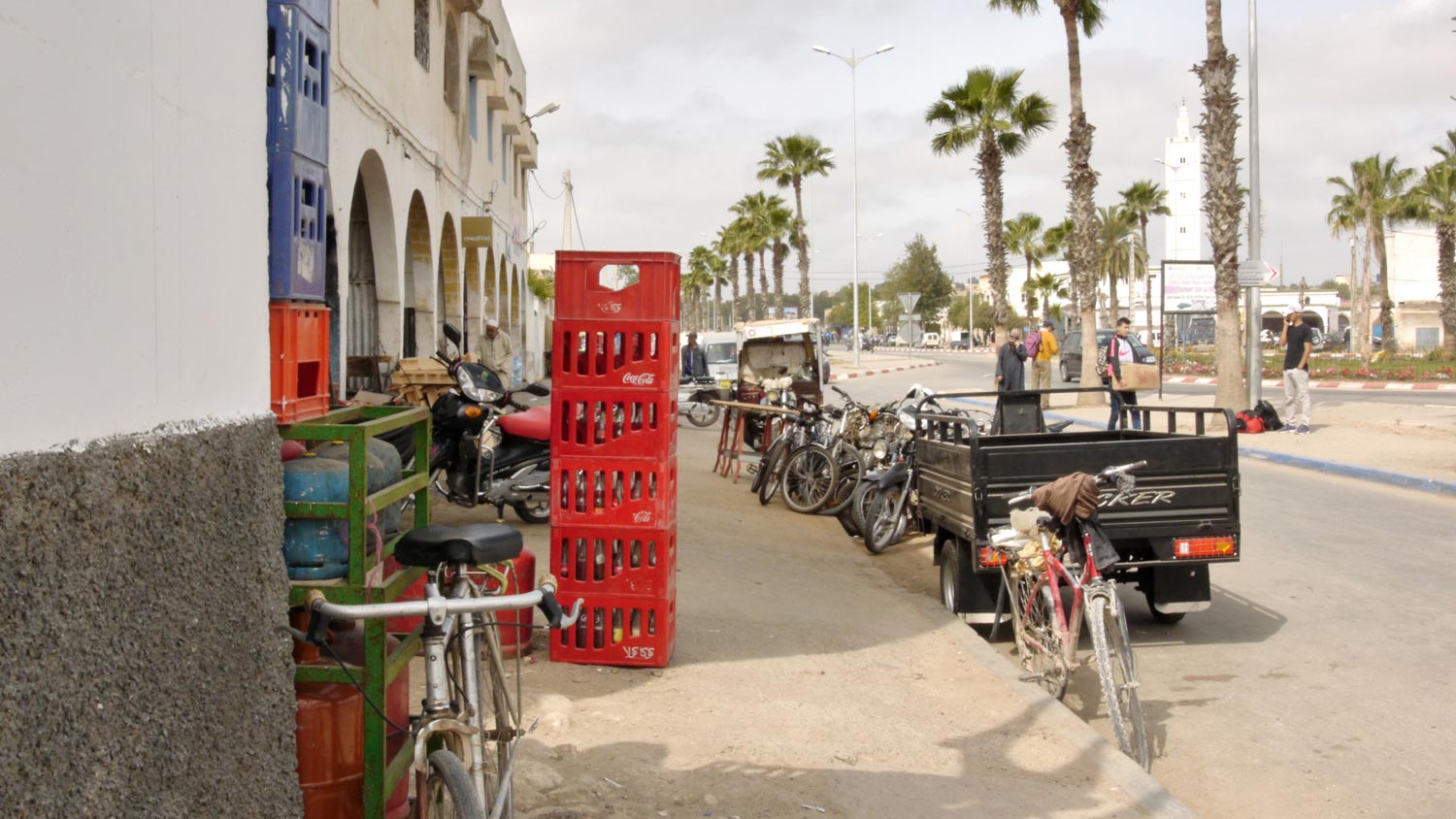Wir sagen Ounagha au revoir, dem Städtchen, in dem wir das französische Wort für Windschutzscheibe gelernt haben. Man kennt uns hier als die mit der pare-brise. Der Schmied guckt leider nicht, als wir vorbeifahren und winken. Zum letzten Mal die Strecke nach Essaouira. Als wir uns der Bergkuppe nähern, hinter der uns gleich die Stadt zu Füßen liegen wird – von oben sieht sie viel größer aus, oder waren wir doch noch nicht überall? – fummele ich die Kamera aus dem Handschuhfach, aber ich kann kein Foto machen, die Speicherkarte ist voll. 32 Gigabyte, vollgeknipst. Ali hat zum Abschied geduldig für mich posiert.