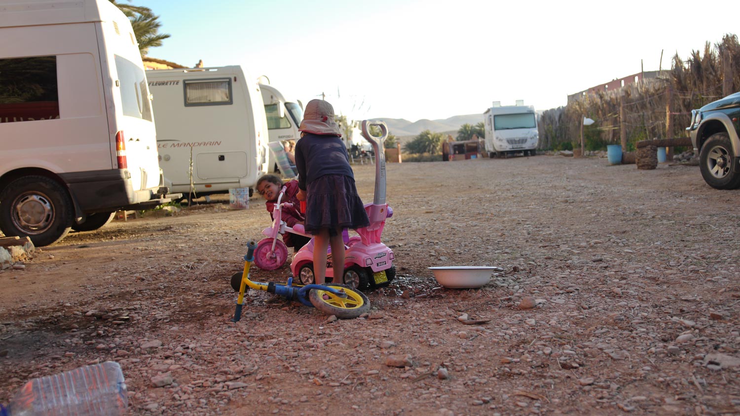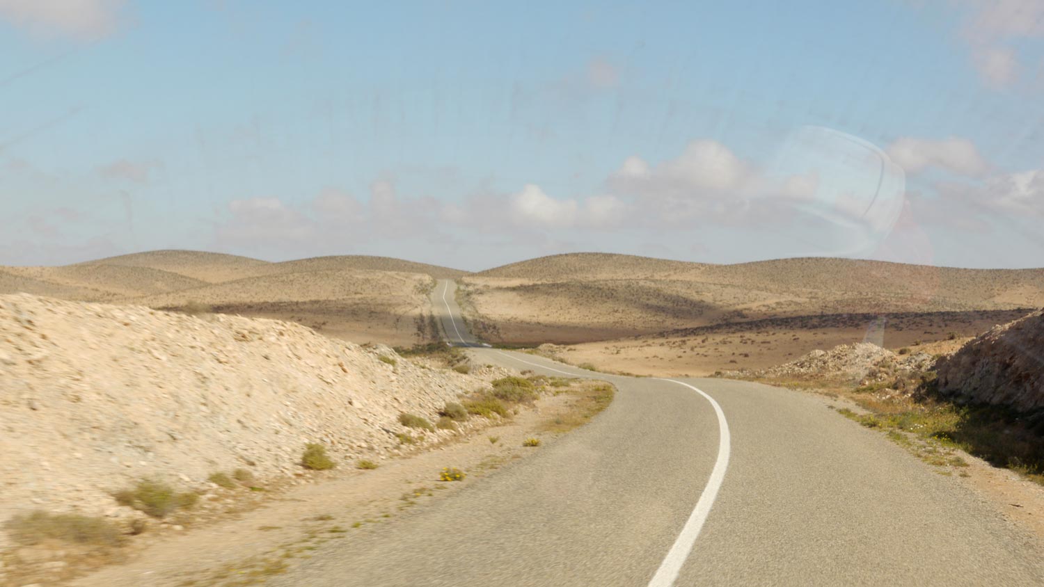 Ich komme mit dem Tagebuch in der Gegenwart an, ein erhebender Moment. Vielleicht schaffen wir es wirklich, das Blog demnächst online zu stellen. Kein Polizist kam, um uns zu räumen, Genugtuung dass wir nicht auf die Rentner gehört haben. Mittags brechen wir auf, zurück Richtung Guelmim, es gibt ja nur eine Straße, die hier hin führt, die müssen wir auch wieder zurück. Die arme Toni schläft nicht ein. Kurz vor Guelmim hole ich sie vor, die Kinder sitzen jetzt immer öfter auf meinem Schoß auf dem Beifahrersitz, wir werden unvorsichtiger, je länger wir in Marokko sind. Es gibt hier wenig Verkehr.