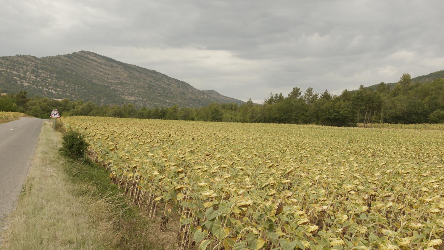Ohne es geplant zu haben, verlassen wir die Berge und geraten in die Provence. Die Straße führt bergab, wir haben keine Wahl, es sei denn wir würden wenden. Aber wir wollten ja in die Provence, prinzipiell. Ich war in meinem Leben schon öfters in dieser Gegend, noch nie habe ich violett blühende Lavendelfelder gesehen. Ich kündige an, dass es diesmal endlich so weit sein wird. Wir kommen an einem Feld mit erntereifen Sonnenblumen vorbei, sie sind eher grau als gelb, ihre Köpfe zeigen zur Erde. Und dann: Die charakteristischen Reihen mit den büscheligen Lavendelpflanzen, alle mit Igelfrisur, alle schon abgeerntet, ich habe die Lavendelblüte wieder verpasst. Trage diesen neuerlichen Schlag des Schicksals mit Fassung.