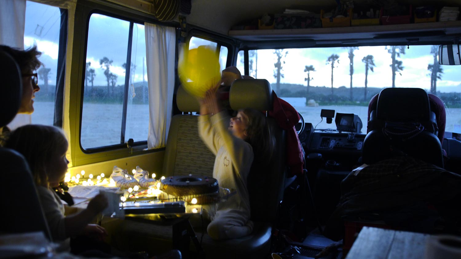 Volker badet mit beiden Kindern im Kinderbad, das ist den teuren Campingplatz wert. Sehr schöne Badewanne, in die beide reinpassen. Ich stecke den rosa Karabiner, den ich als Geschenk auf dem Flohmarkt in Almunecar gekauft habe, in Tonis Bademantel. Sie findet ihn nicht von allein, sondern ich muss sagen: Huch, was ist da denn Hartes? Sie freut sich sehr. Besteht darauf, dass der Nikolaus ihn da rein gesteckt hat. Ich will sie gerne in dem Glauben lassen, aber Volker überzeugt sie davon, dass ich es war. Unsere schöne Lichterkette.