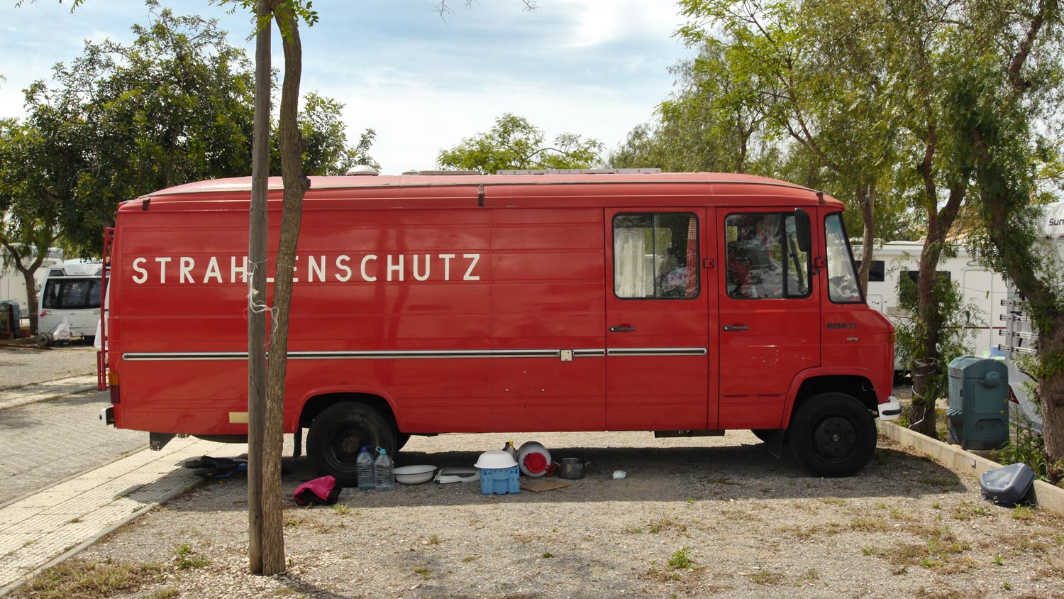 Danach rollen wir Richtung Faro, obwohl Henning erst übermorgen dort ankommt. Für die Brücke, die auf die vorgelagerte Insel führt, sind wir eigentlich eine halbe Tonne zu schwer, wir fahren trotzdem drüber. Die Insel ist ein langes, aber kaum hundert Meter breites Gebilde, auf der einen Seite liegt das Haff mit dem Flugplatz dahinter, auf der anderen tosendes Meer. Wir parken auf der Haff-Seite. Nationalpark Ria Formosa.