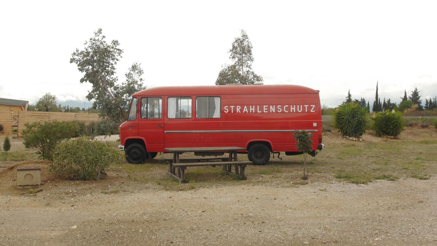 Es gibt einen Mann, der das Kommando hat und einen anderen, der ausführt. Ich spreche nur mit dem, der das Kommando hat. Er sagt, dass wir den Ersatzreifen, der unter dem Düdo hängt, losmachen sollen. Ich sage, dass wir nicht das richtige Werkzeug dafür haben. Er, ungläubig, etwas später: Ihr habt keinen Schlüssel dafür?? Ich verstehe nicht gleich, dann fasele ich, in etwa: Doch, haben wir, aber wir waren nicht stark genug und das Kreuz, das eigentlich dafür gedacht ist, haben wir unglücklicherweise hinter unserem Gaskasten eingemauert. Ich glaube nicht, dass er mich versteht, wie auch.